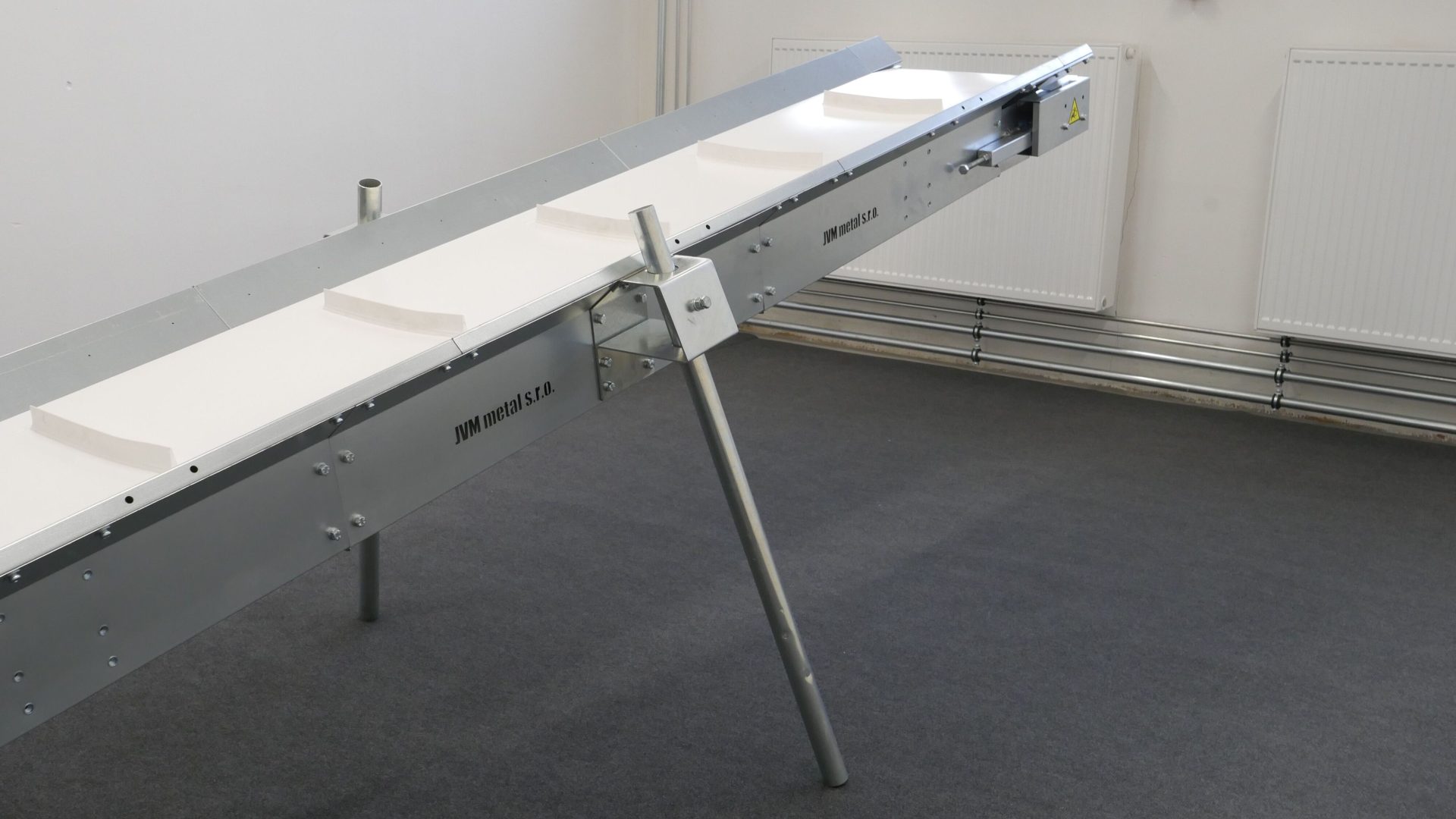 The conveyor belt is available in various lengths and widths. A core advantage of our conveyors is their PATENTED modular design, which allows them to be easily extended or shortened in a few minutes. You can use our configurator to select the specific dimensions of your conveyor as you require.