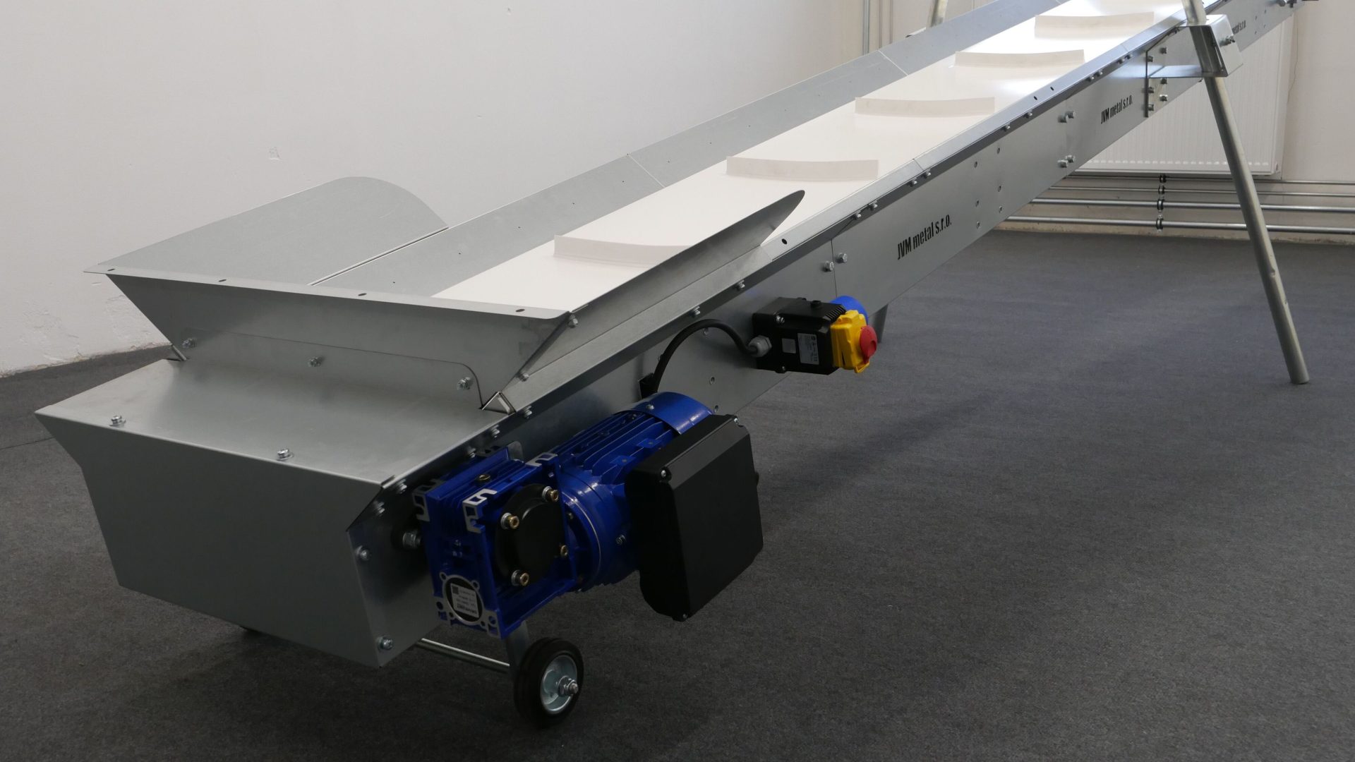 The conveyor is fitted with a 0.75 kW electric motor with a worm gear. The voltage of the motor is 230 or 400 V.